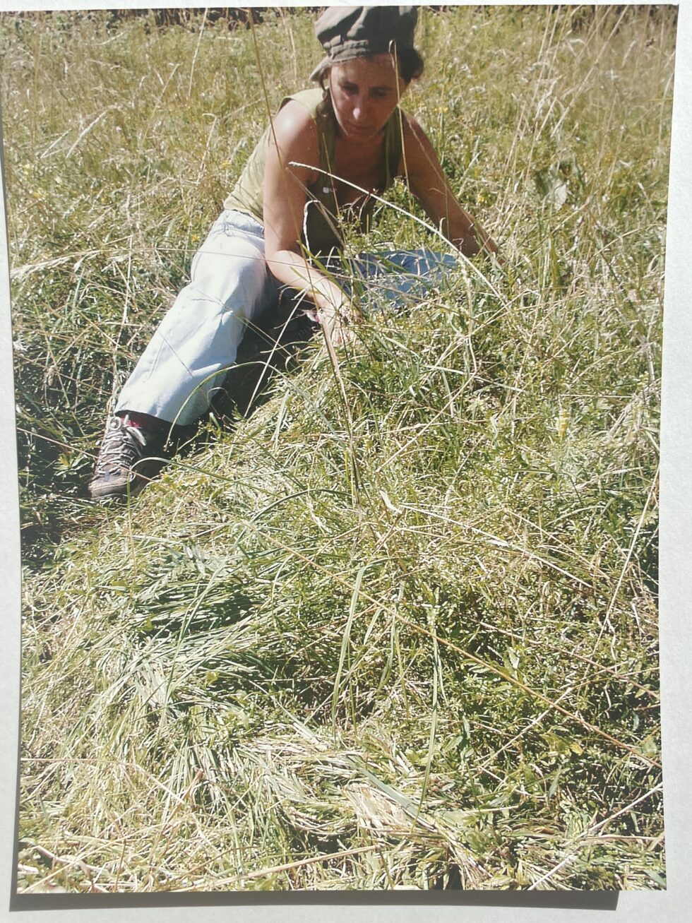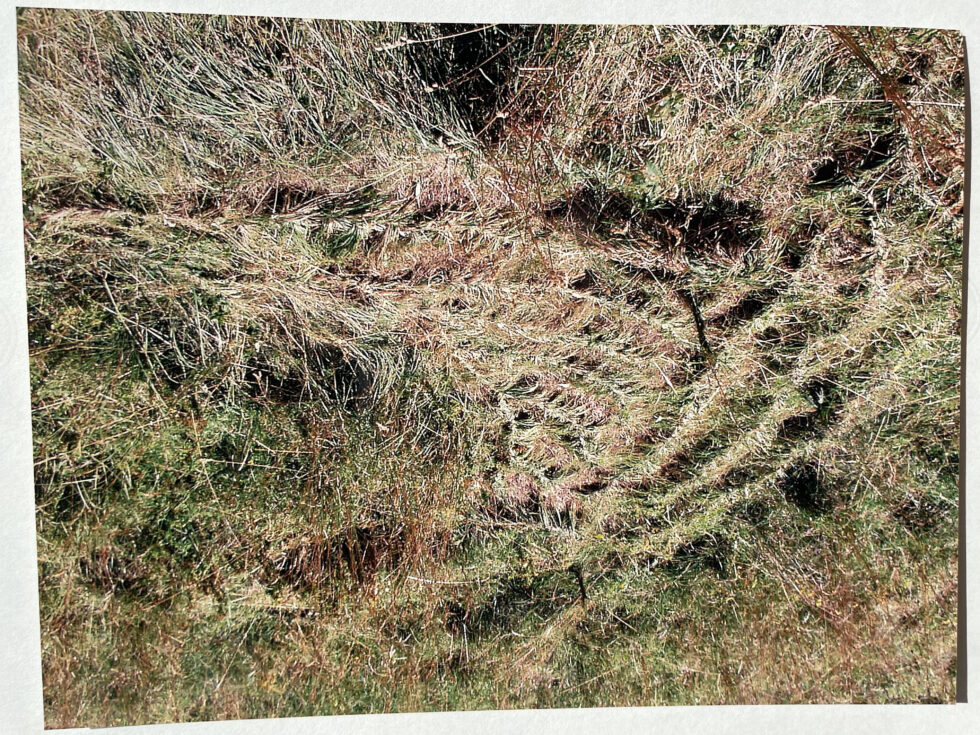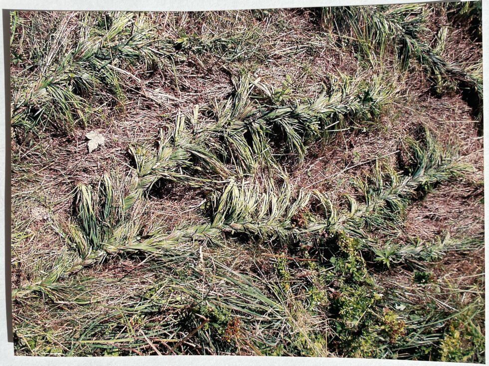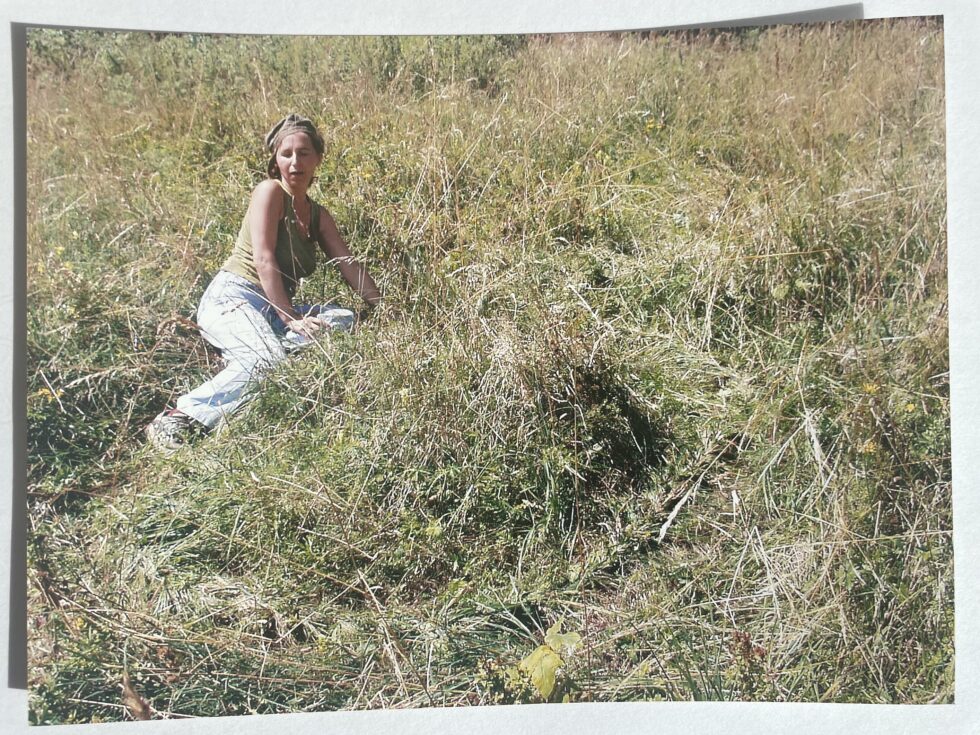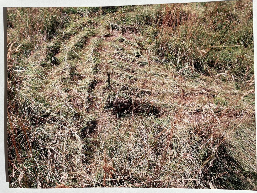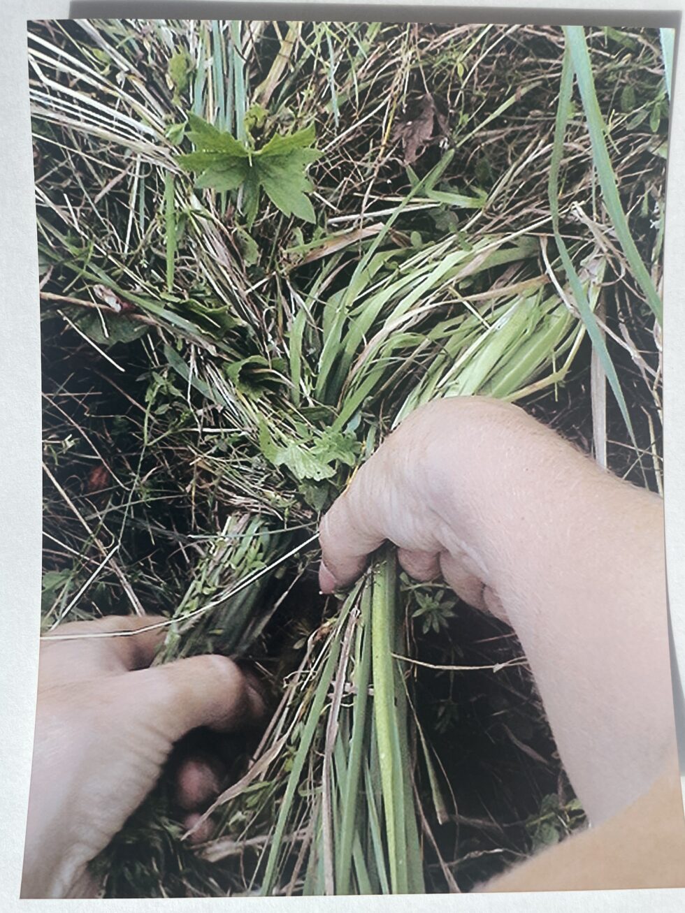 “The object of my interest in this case was the confrontation with high, maturely grown grass in the village of Lokovec, Slovenia. I decided to attack the hill by plaiting the grass in several braids along the slope. The summer heat was blazing, there was no shelter from the sun and the hill was rather steep. Still, after a day, the grass in a small area was conquered, the braids were convincingly shaped.