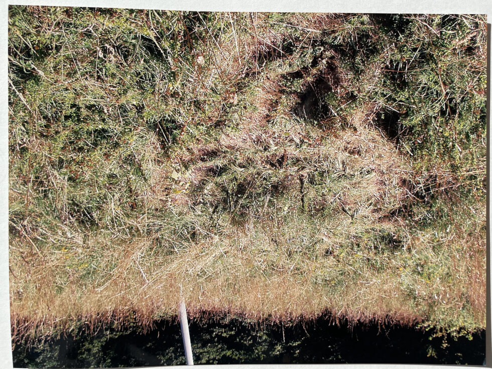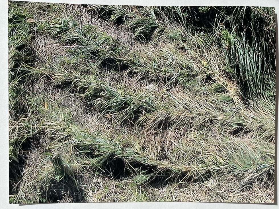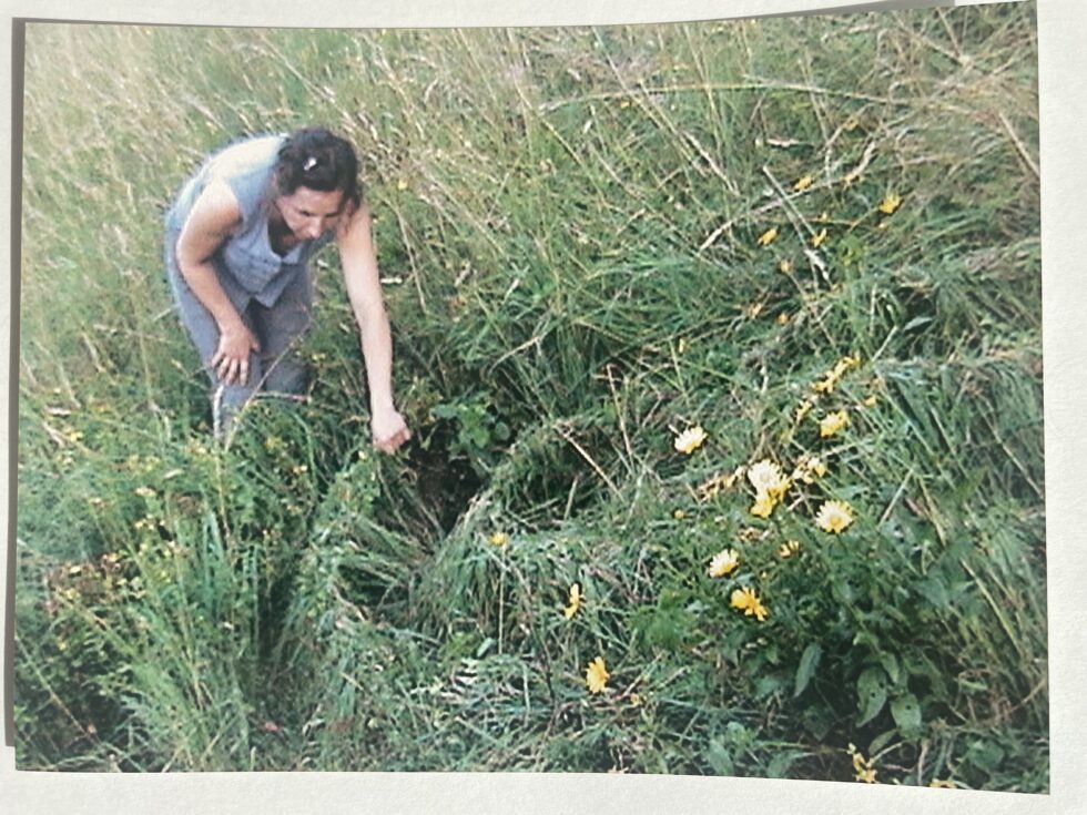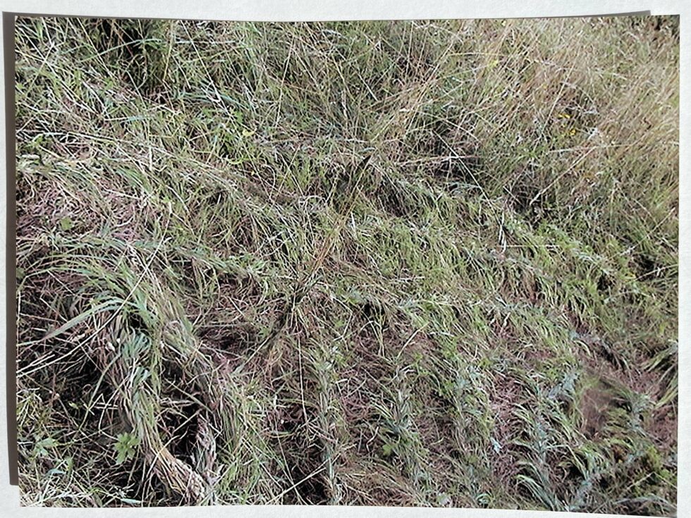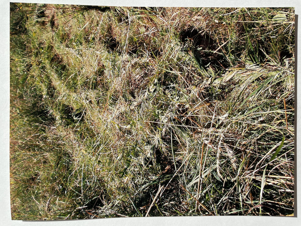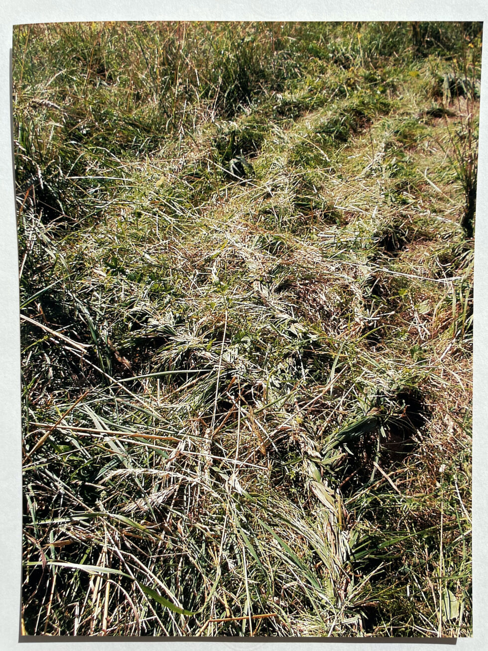 “The object of my interest in this case was the confrontation with high, maturely grown grass in the village of Lokovec, Slovenia. I decided to attack the hill by plaiting the grass in several braids along the slope. The summer heat was blazing, there was no shelter from the sun and the hill was rather steep. Still, after a day, the grass in a small area was conquered, the braids were convincingly shaped.