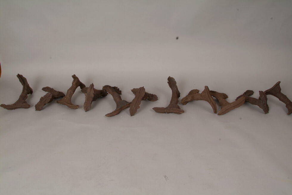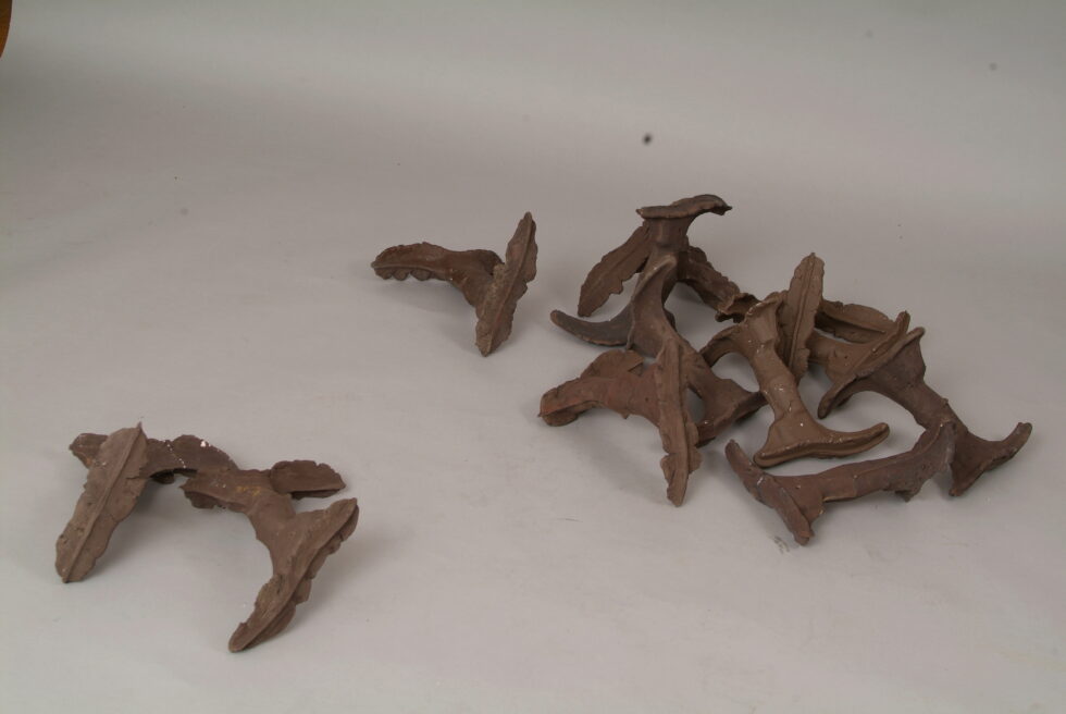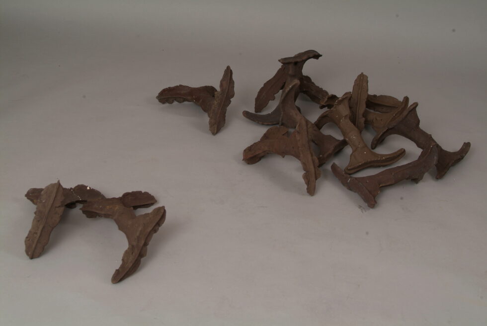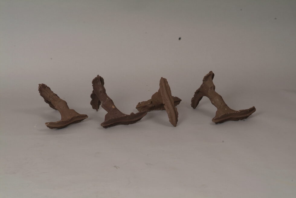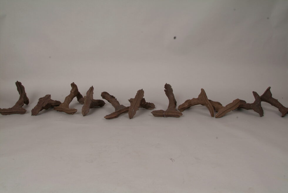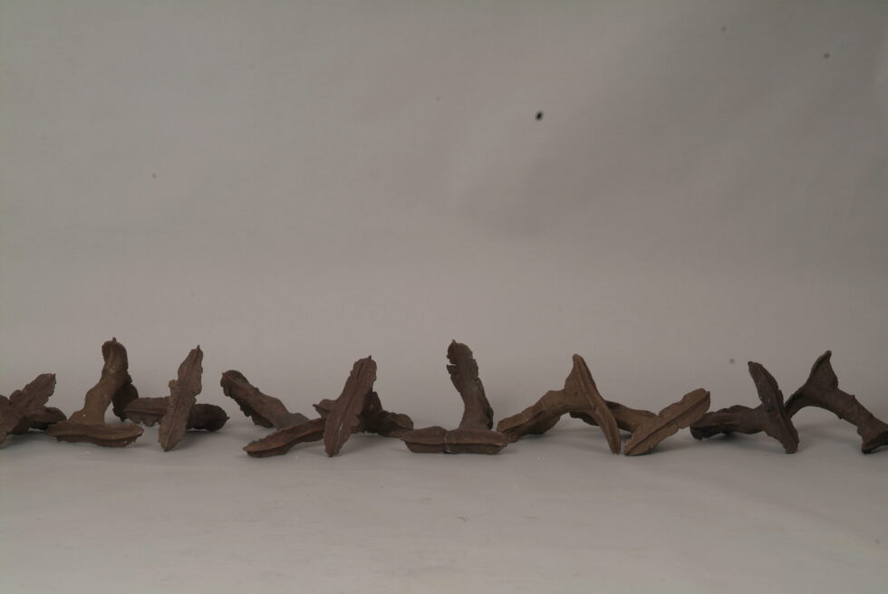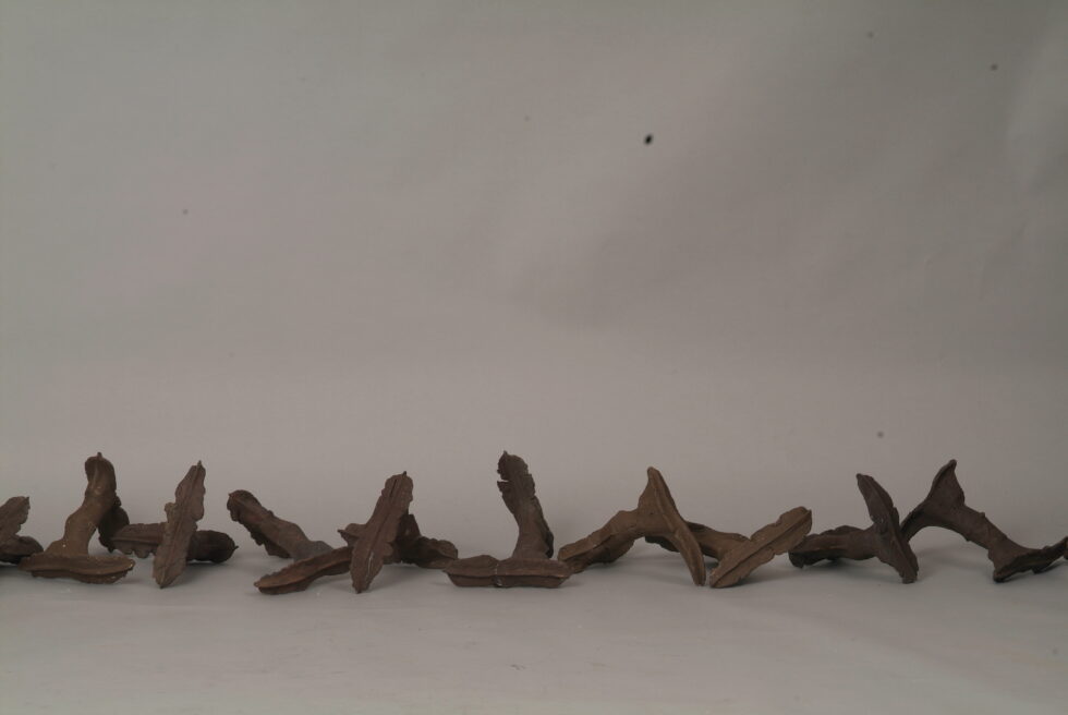 “This piece demands the viewer to imagine the individualcomponenets in movement. Each part is made up of two pieces which can be reminiscent of a foot wearing a boot or a part of a turbine – a mechanical part. The rusty look of the parts seems antiproductive to the implied movement. The parts are not connected into larger wholes and they may be positioned in a variety of ways as long as the approximate distance is such that the eye sees them as a whole. The objects, conceived as anonymous individuals or pairs, bring up questions on humanity, free will and the identity of 21st century individuals.”