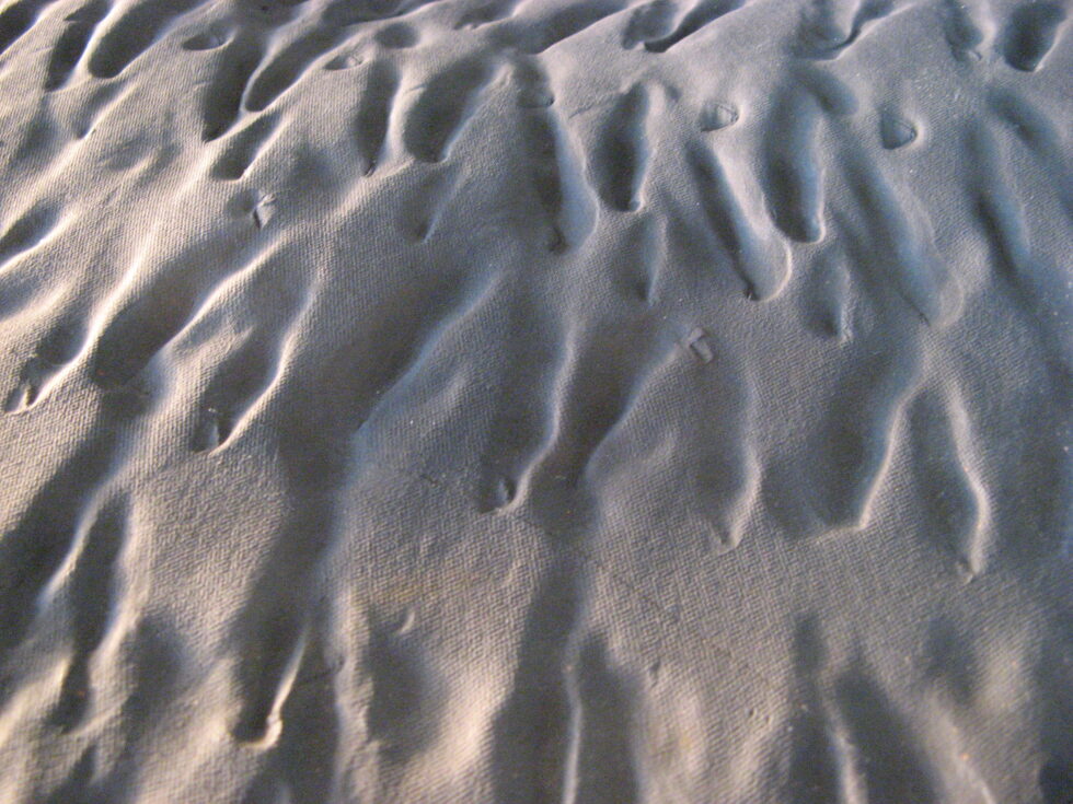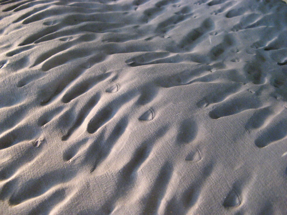 When fired, I place the slab on a pottery wheel and let it turn. When the clay begins to actually move on it’s axis, the effect of waves, emphasized by the play of light and shadow, is formed.”