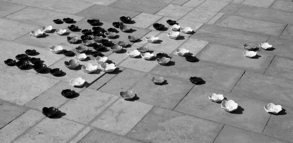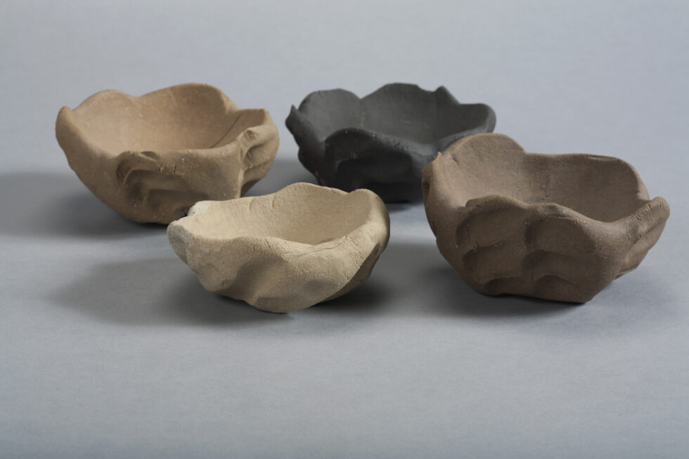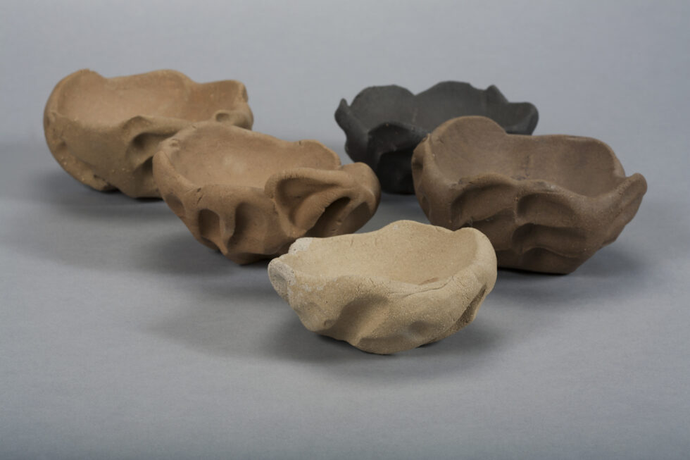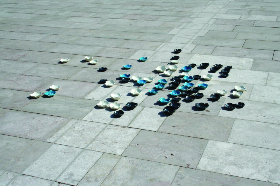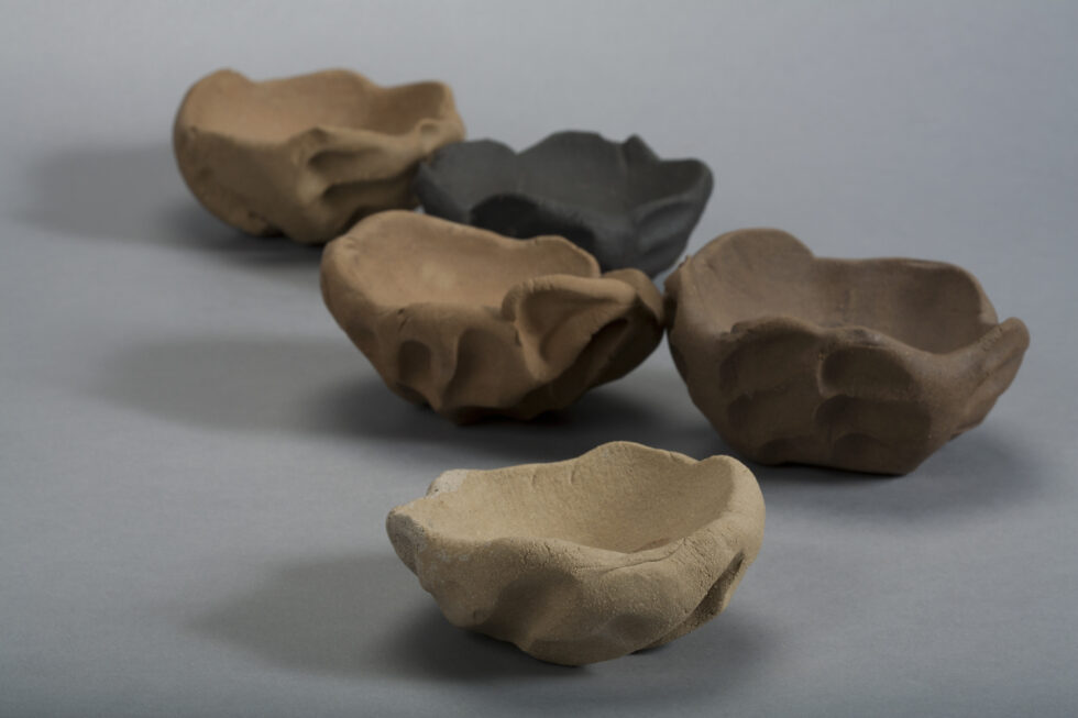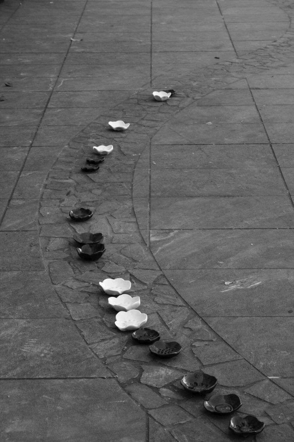 “While creating each of the objects in „The Blossoms“ I had in mind the softness and pliability of the clay material. I developed a technique of rhythmical pounding on clay with the intention of making blossom-like shapes, also suggesting movement. In such a way each of the „blossoms“ is frozen in time.
